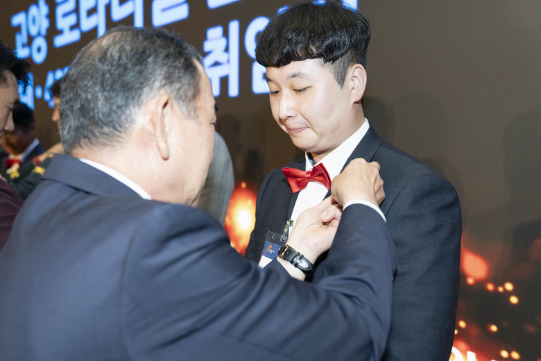 이날 신입 회원들은 각자의 이름을 호명 받으며 단상에 올라 클럽의 정식 회원으로서 첫 걸음을 내딛었다. 각 회원에게는 김동환 회장과 로타리 총재단 및 지역 대표가 함께 축하의 꽃다발과 회원뺏지를 전달하며, 이들의 새로운 시작을 축하했다.