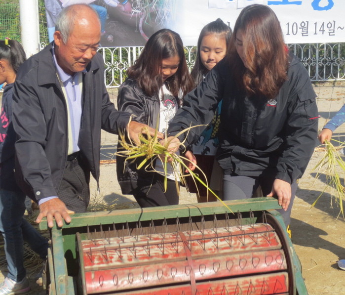 아이들은 서툰 솜씨로 직접 낫을 이용해 벼 베기를 하며, 홀테부터 탈곡기, 도정기 등 농기구를 체험해 보는 시간을 갖는다.