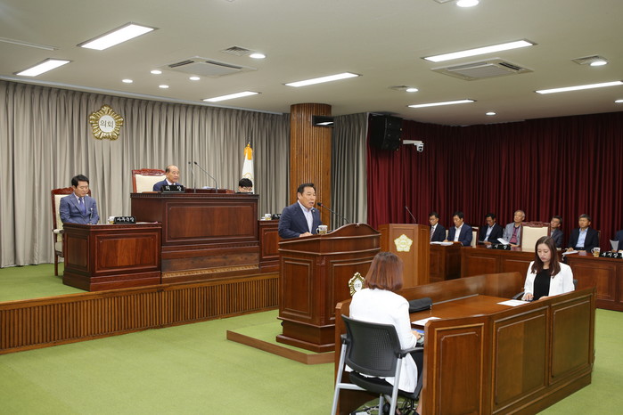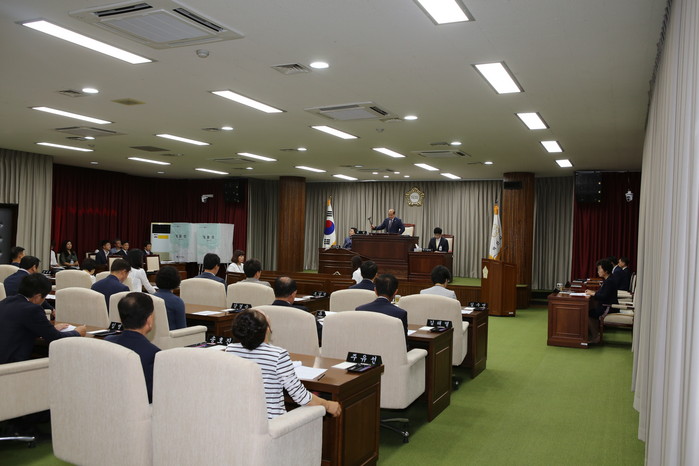 소병홍 의장은 개회사를 통해“이번 여름은 기록적인 무더위에 가뭄까지 겹치면서 농가의 피해가 많아 농민들의 시름과 고통에 무척 안타까운 마음 금할 길 없다”고 말하고, 여름철 후반까지 늦더위가 예상되는 바 집행부에서는 예방조치를 철저히 시행하여 피해가 최소화될 수 있도록 최선을 다해달라고 부탁했다.