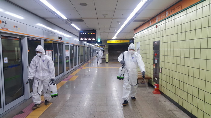 또한 지하철 이용객이 많은 개찰구 및 대합실, 승강장, 화장실 등에 분무기를 이용 방역(액체 살균) 소독을 실시함으로써 시민들이 지하철을 안심하고 이용 할 수 있도록 했다.