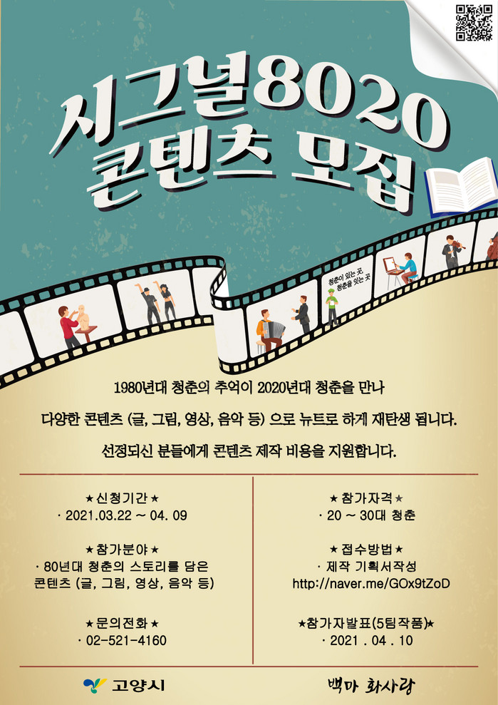 오는 4월 9일(금)까지 시그널 8020 지원서 모집 링크 혹은 공모 포스터의 QR코드를 통해 접속해 제작 기획서를 작성하면 된다. 총 5개팀의 작품을 선정할 예정이며, 선정된 팀에게는 콘텐츠 제작비를 지원한다.