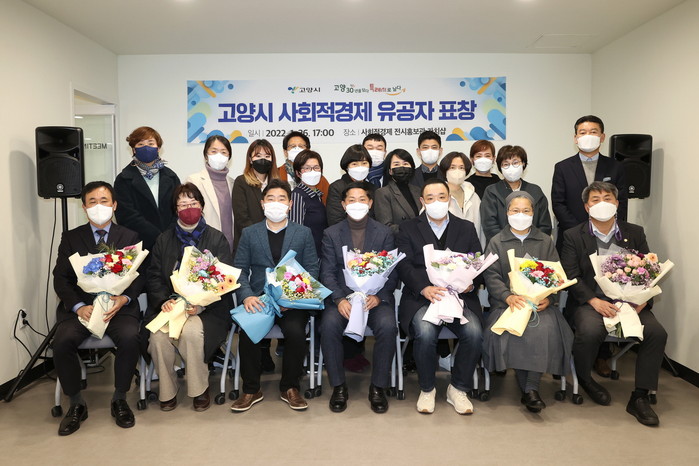 지난 26일 오후 5시 고양시 사회적경제 전시홍보관 가치샵에서 코로나19로 힘든 시기를 보낸 사회적경제인들을 격려하며, 사회적경제 경쟁력 강화 및 지역경제 활성화에 기여한 고양시지역 (예비)사회적기업, (사회적)협동조합, 사회적경제기업 임직원 등에게 표창장을 전달했다.