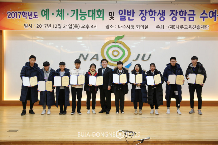 [부자동네타임즈 손권일 기자](재)나주교육진흥재단(이사장 강인규)은 지난 21일, 나주시청 대회의실에서 장학금 수여식을 갖고 예·체·기능대회 입상자 및 일반 저소득층 학생총 250명에게 장학금 1억4천32만 원을 수여했다.