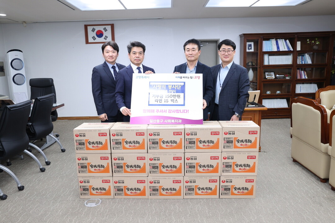 [부자동네타임즈 = 김인수 기자] 고양특례시 일산동구는 지난 14일 ‘고양 난다(복지 나눔 1촌 맺기)’ 사업의 일환으로 법원공무원교육원‘사랑의 봉사단’으로부터 저소득층을 위한 기부금 150만원과 라면 15박스를 전달받았다고 밝혔다.