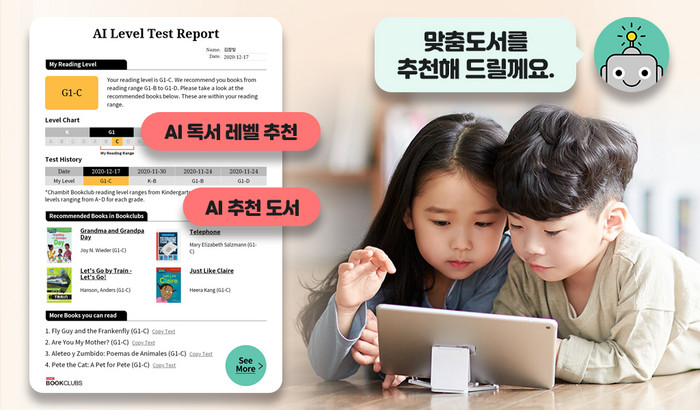 이 서비스는 영어를 모국어로 사용하지 않는 한국 아이들에게 최적화된 영어학습 플랫폼으로 도서 빅데이터 분석과 AI 레벨테스트를 통해 학습자에게 꼭 맞는 책을 추천해주고, 피드백을 주고받으며 수준별 독서 교육을 제공한다.