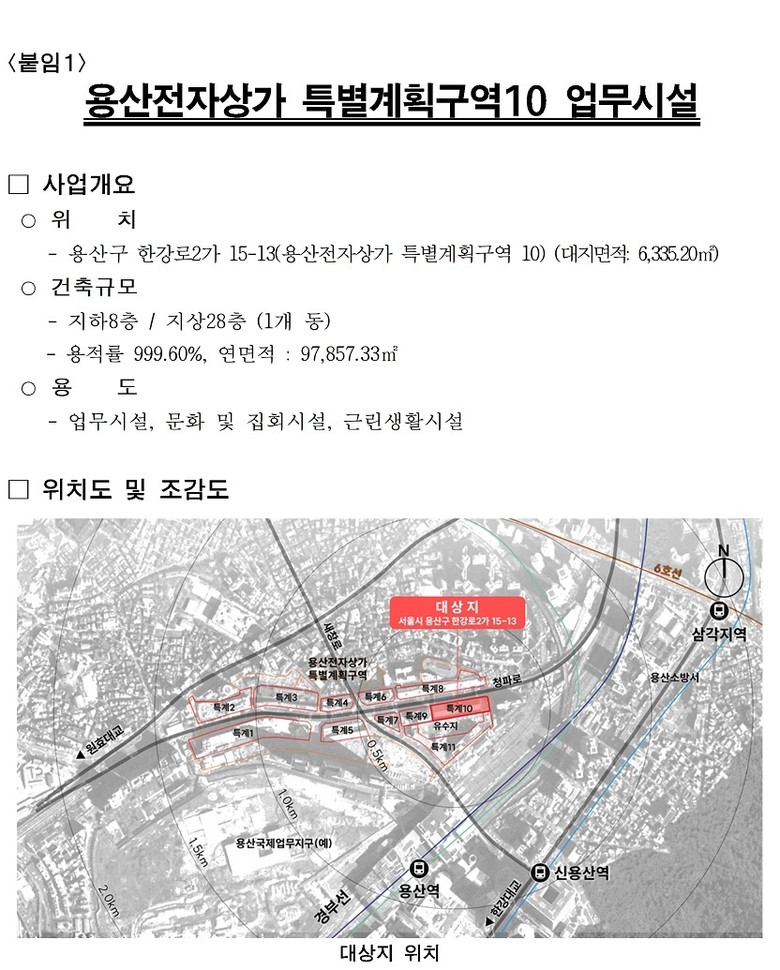 최진석 서울시 주택실장은 “이번 건축위원회 심의 통과는 용산전자상가 일대가 인근 용산국제업무지구와 연계된 미래 서울의 핵심 도심 축으로 거듭나는 중요한 이정표가 될 것”이라며, “앞으로도 민간 개발 시 혁신적인 건축 디자인을 적극 유도하고, 시민들이 언제나 편하게 찾아와 쉴 수 있는 다채로운 녹지 공간을 확충해 매력적인 도시 서울을 만들어 나가겠다”고 말했다.