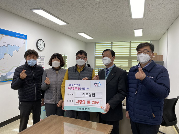 이날 사랑의 쌀을 기증하기 위해 행정복지센터를 방문한 신도농협의 김한모 조합장은 “매년 쌀을 기증해오고 있지만, 올해는 특히 코로나19로 생활이 어려워져 고통 받고 있는 이웃들이 많아 작은 정성이나마 보탬이 되고 싶었다”고 소감을 밝혔다.