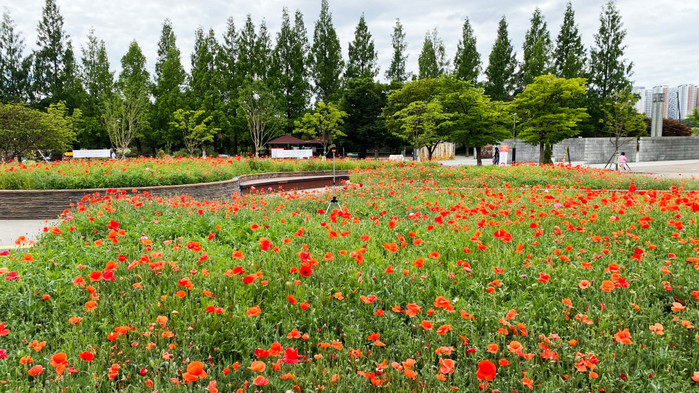 시민들의 힐링 공간과 고양시 주요 거점 정원으로 자리매김한 고양꽃전시관 광장에는 여름을 알리는 꽃들이 활짝 피어있다. 그중에서도 전면 화단 600㎡를 붉게 물들인 꽃양귀비가 시민들의 눈길을 사로잡는다. 특히 심각한 가뭄을 극복하고 화려한 꽃을 피웠기에 더욱더 의미가 깊다.