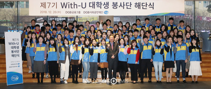[부자동네타임즈 이현재 기자]DGB사회공헌재단(이사장 김태오)은 26일(수) 오후 DGB대구은행 제2본점에서 지역대학생들의 자발적 봉사조직인 ‘With-U대학생봉사단’ 해단식을 실시했다.