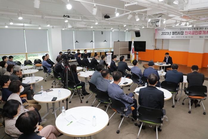 [부자동네타임즈 김인수기자] 고양특례시(시장 이동환)는 15일 고양인재교육원에서 민선8기 시 핵심정책과 현안을 공유하고, 관내 공인중개사들의 목소리를 시정에 반영하기 위해 한국공인중개사협회(일산동구⋅서구 지회) 40명과 소통간담회를 가졌다.