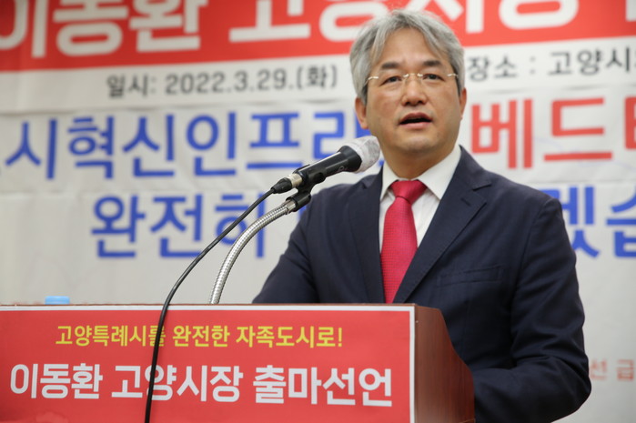 이동환 예비후보는 29일 고양시의회 영상회의실에서 민선8기 고양시장 출마기자회견을 갖고 “고양시를 완전한 자족도시로 조성하겠다”고 주장했다.
