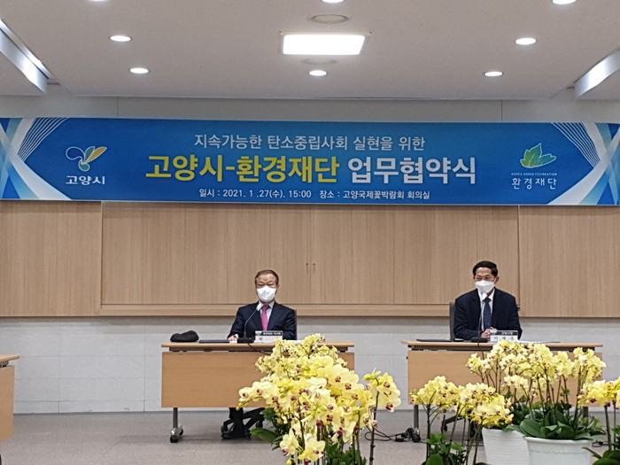 [부자동네타임즈 김인수기자] 고양시와 재단법인 환경재단(이사장 최열)이 지속가능한 탄소중립 사회 실현을 위한 업무협약을 체결했다.