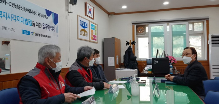 [부자동네타임즈 김인수기자] 고양시 덕양구 원신동(동장 이종찬)은 11일 "원신동행정복지센터에서 LH신원마을4단지(관리소장 임종섭)와 나눔문화 확산 및 복지사각지대 발굴을 위한 업무협약을 체결했다."고 밝혔다.