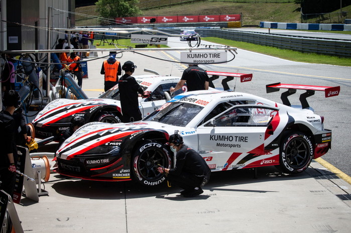 [사진설명] 엑스타레이싱팀이 주행에 앞서 피트로드에서 차량을 점검하고 있다.