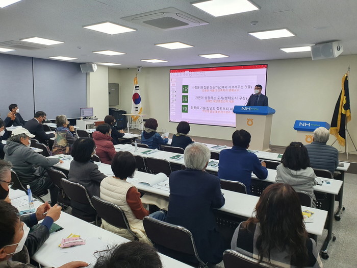 녹색건축교실은 제1강 서울대 건축과 김광현 명예교수의 ‘사람은 왜 집을 짓는가(건축이 우리에게 가르쳐주는 것들)’을 시작으로 제2강 해안건축 김태만 건축사의 자연이 성장하는 도시(생태도시에 관한 구상), 제3강 중부대 박은영 교수의 ‘정원의 기술(집안의 정원부터 마을정원까지), 제4강 녹색건축물 현장학습 순서로 진행됐다.