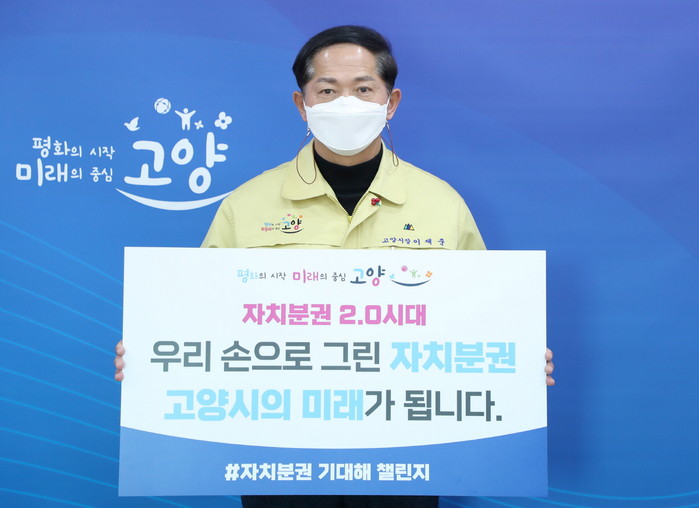 [부자동네타임즈 김인수기자] 이재준 고양시장이 8일 ‘자치분권 기대해’ 챌린지에 동참해 자치분권의 미래에 시민이 함께해주기를 호소했다. 이재준 시장은 이날 허성무 창원시장으로부터 챌린지 참여자로 지명 받아 참여하게 됐다.