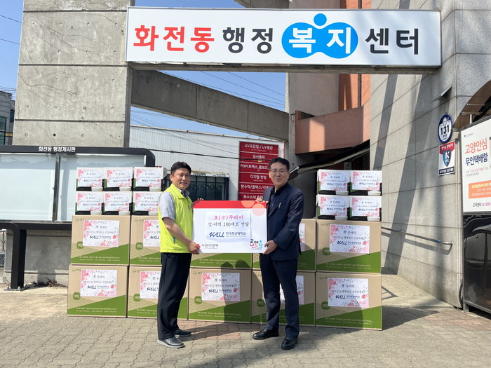 [부자동네타임즈 김인수기자] 고양특례시 화전동은 ‘5월 가정의 달’을 맞이하여 지난 15일 한국항공대학교(총장 허희영)로부터 관내 어려운 어르신 등을 위한 효(孝)꾸러미 김·미역세트 100개를 기부 받았다고 밝혔다.