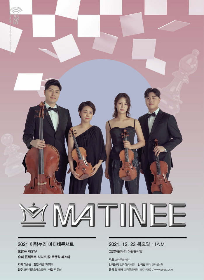 [부자동네타임즈 김인수기자] 고양문화재단(대표이사 정재왈)은 2021 아람누리 마티네 콘서트 시리즈의 마지막 무대 로맨틱 페스타를 오는 12월 23일(목) 오전 11시, 고양아람누리 아람음악당에서 선보인다. 특히, 이번 무대는 라이프치히 국립음대 비올라 교수로 재직 중인 이승원이 지휘와 비올라 협연을 함께 선보이는 플레이 디렉팅 무대로 마련된다.