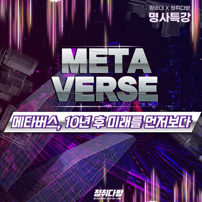 특강은 ‘메타버스, 10년 후 미래를 먼저보다’라는 주제로 메타버스의 기초 개념에 대해 알아보고 디지털 지구인 메타버스가 우리 삶과 일, 비즈니스 환경 등을 어떻게 변화시킬지 살펴보았다.