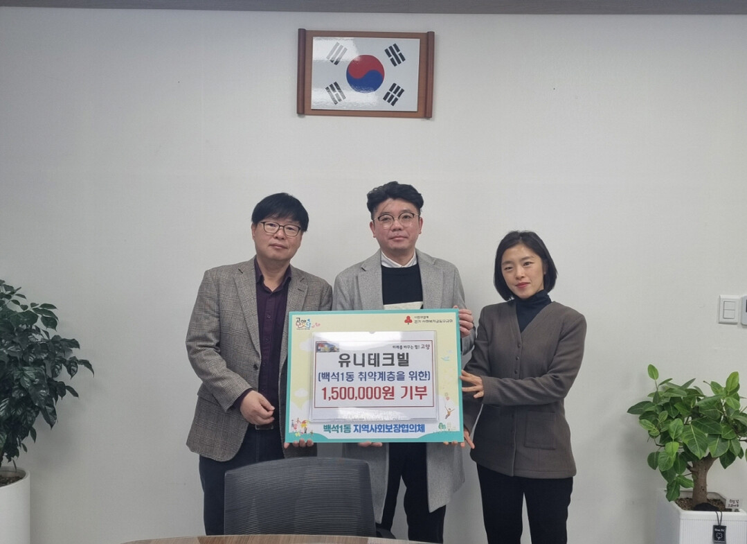 김경한 백석1동장은 “정기적으로 나눔을 실천하는 유니테크빌입주사에게 감사드리며, 성금은 꼭 필요한 대상자에게 연계되게 노력하겠다”고 전했다.