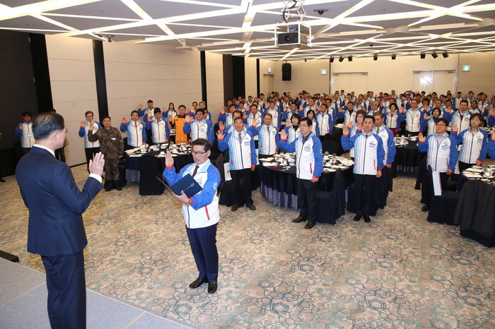 또 선웅주 고양시체육회 사무국장의 결의문 낭독은 결연하기까지 했다. ‘적극적으로 책임감 있게 최선을 다할 것과 손님맞이에 열과 성을 아끼지 않고 맡은 바 임무를 성실히 수행할 것’이란 내용으로 참석자 모두 따라 외치며, 고양시민의 성공 개최에 대한 염원을 표현했다.