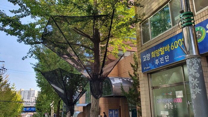 이번에 설치된 은행나무 열매 수거장치는 은행나무에 그물망을 설치해 열매가 떨어지기 전에 수거하는 방식으로 악취를 예방할 수 있다는 장점이 있다.