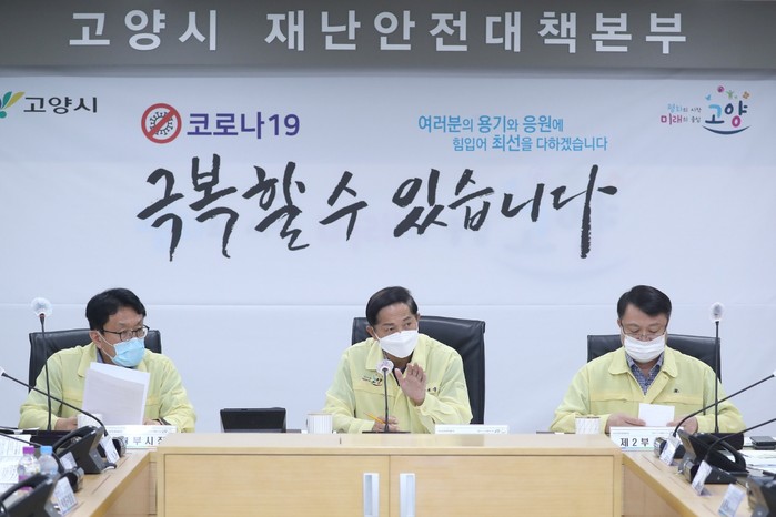 [부자동네타임즈 김인수기자] 이재준 고양시장은 23일(일요일) 08:30 고양시 재난상황실에서 긴급 재난대책본부 회의를 주재하고 대중교통 비말차단용 투명비닐막 설치를 비롯 생활 속 코로나19 예방대책과 일반·휴게음식점 업주들의 적극적인 동참을 당부했다.