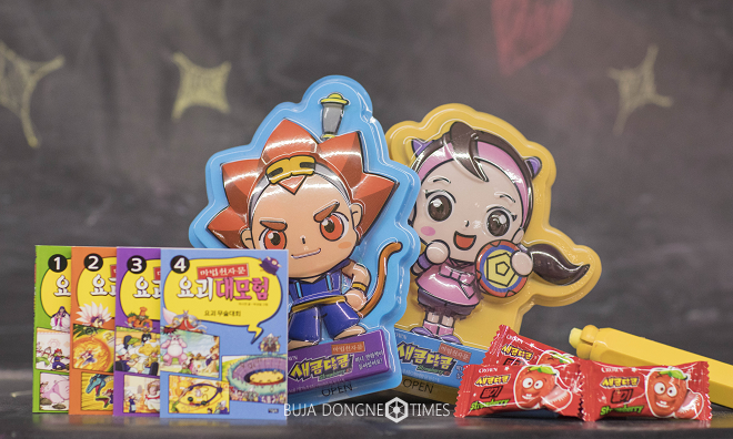 [부자동네타임즈 김현정 기자]맛있는 캔디와 재미있는 책이 만났다.크라운제과가 국내 최초로 출시한 캔디북 ‘새콤달콤 마법천자문’이 그 주인공.마법천자문의 캐릭터 손오공과 삼장 모양의 케이스 안에 새콤달콤과 미니북 1권이 들어있다.
