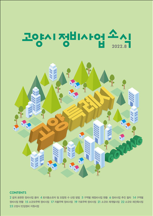 고양시는 도시경쟁력을 높이고 주민의 주거환경을 개선하고자 추진 중인 각종 정비 사업의 진행사항 등 정확한 정보제공을 통하여 재개발, 재건축 및 소규모주택 정비사업 등에 대한 주민들의 이해와 투명성을 높이기 위해 격년으로 소식지를 발간해왔다.
