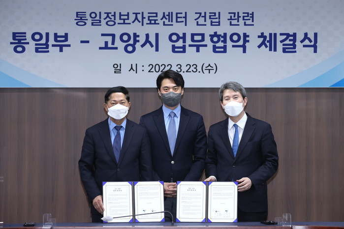 [부자동네타임즈 김인수기자] 고양시가 지난 23일 정부서울청사 통일부 대회의실에서 ‘통일정보자료센터’의 원활한 고양시 이전.건립을 위한 양 기관간 상호협력 업무협약(MOU)을 체결했다.