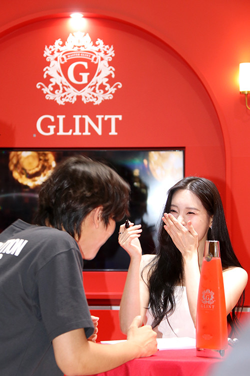 | ▲글린트리큐르 홍보모델 선미가 시음 후 팬사인회를 하고 있다. |