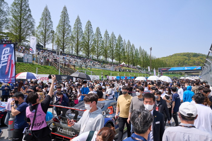 [사진설명] 용인 에버랜드 스피드웨이에서 열린 개막전에서 피트, 그리드워크 이벤트 시간에 모여든 관람객들.