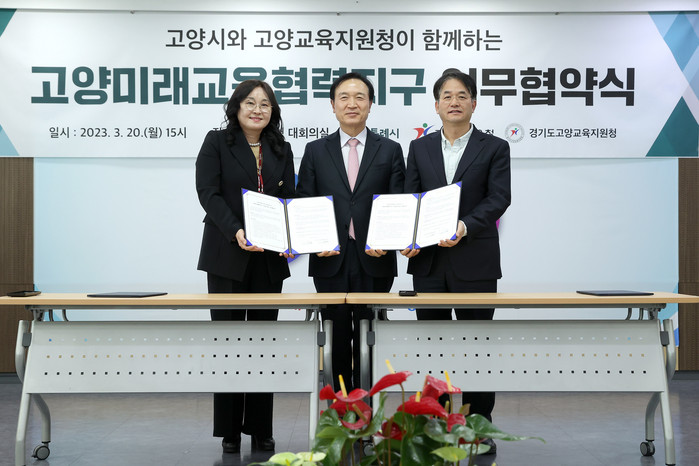 [부자동네타임즈 김인수기자] 지난 3월 20일 고양시청 대회의실에서 경기도교육청, 고양교육지원청과 ‘미래교육협력지구’ 사업을 위한 업무협약을 맺었다.