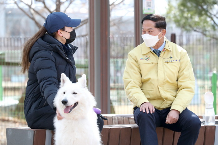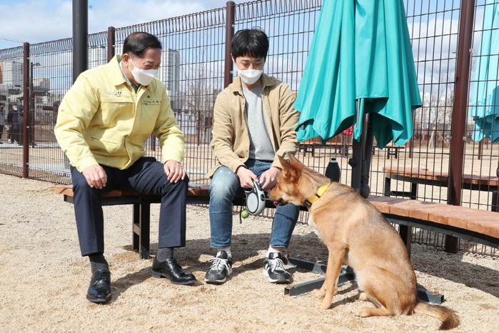 그리고 동물단체(펫빌리지 이경미 대표, 한국유기동물복지협회 임장춘 대표, 한국애견연맹 정책·기술위원 정광일 소장, 도래울 강사모 김정기 대표 등 동물단체 관계자들, 반려견과 함께 이곳을 찾은 시민들과 놀이터 이용 관련 건의사항을 청취하는 대화 시간도 가졌다.