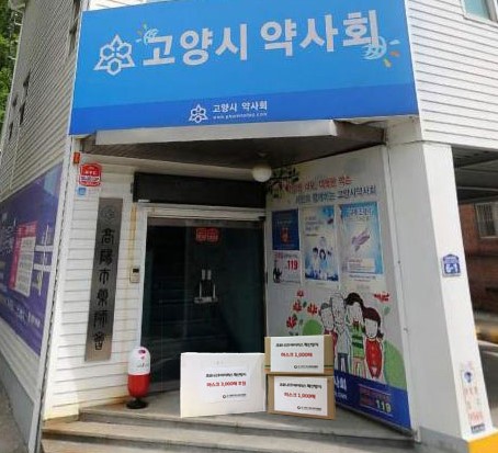 지난 2월 28일 연합회와 고양시 기업지원과 직원들은 마스크 부족으로 어려움을 겪고 있는 고양시약사회에 3,000장, 고양동 하늘문 납골당에 1,000장, 설문동 청아공원에 1,000장을 전달했다.