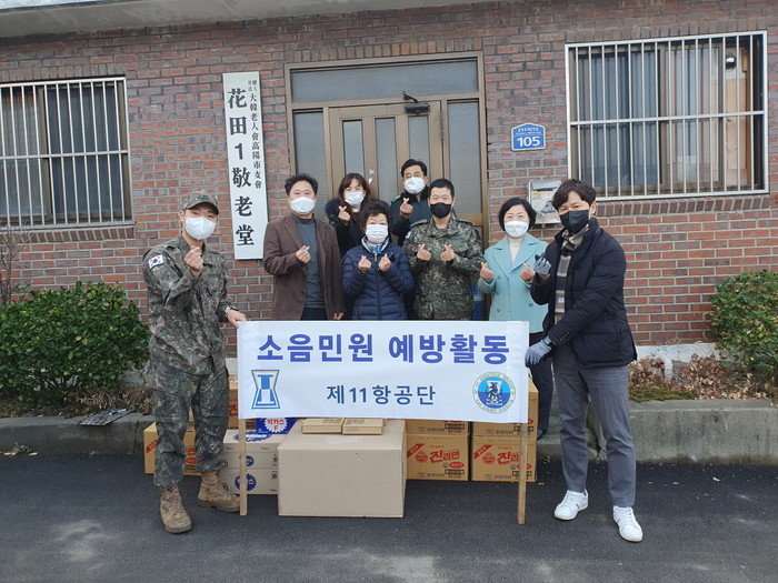 육군 11항공단은 2019년부터 반기마다 화전동 저소득 어르신들을 위한 식료품, 생필품 등을 기부해 따뜻한 마음을 전하고 있다.