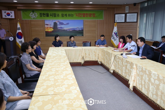 [익산=부자동네타임즈 이정술 기자] 익산시가 각계각층 시민들의 다양한 의견을 청취하고 시민의 눈높이에 맞춘 감동 행정을 펼치기 위해 운영하고 있는 ‘시민 열린 광장’이 27일 오후 시청 상황실에서 열렸다.