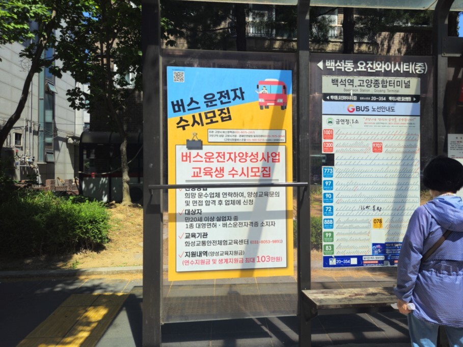 시는 운수종사자 모집 및 양성사업 홍보를 위해 관내 44개 모든 동 행정복지센터의 현수막 게시대를 활용해 현수막을 게시하고, 주요 버스정류소 셸터 20곳에 광고를 게시했다.