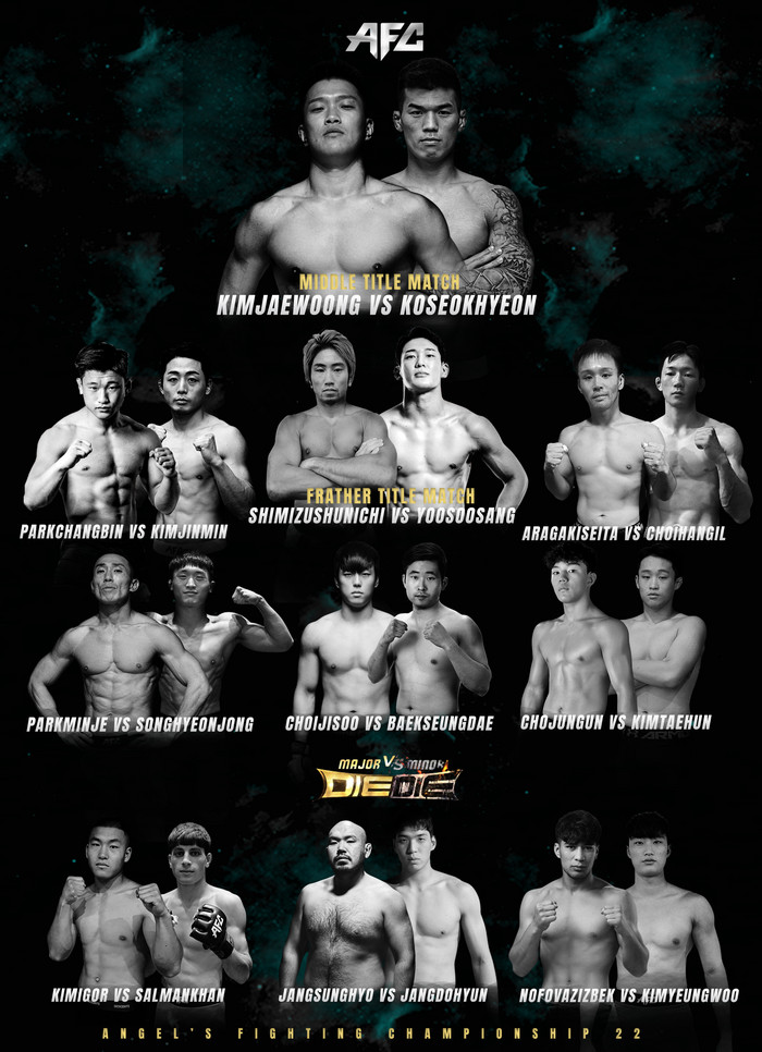 대망의 2022년을 장식하는 AFC 22는 역대급 초호화 라인업으로 개최된다. 여기에 유튜브에서 폭발적인 인기를 누리고 있는 인기 격투 예능 ‘DIE DIE’와 협업해서 선수들을 대거 포함시키면서 새 얼굴 찾기에 나선다.