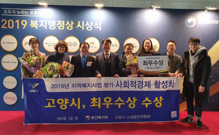 [부자동네타임즈 김인수기자] 고양시(시장 이재준)는 지난 9일 정부세종컨벤션센터에서 열린 ‘2019 사회적경제 활성화 부문 복지행정상’ 시상식에서 최우수상을 수상했다.
