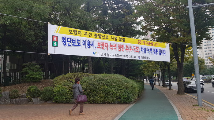 그동안 고양시청 입구 교차로에 시범 적용해본 결과, 비보호 좌회전하는 차량이 횡단보도를 진입하는 속도가 12.8% 감소하였고, 보행자가 횡단보도 상에 있을 때 차량이 횡단보도를 통과하는 건수는 66.7% 감소한 것으로 나타났다.