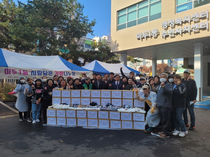 장문순 마두1동장은 “쌀쌀한 날씨에도 불구하고 부녀회원들과 직능단체 회원들이 홀몸 어르신들과 어려운 이웃에 도움이 되고자 나눔의 마음을 담아 열심히 참여해주셔서 너무 고맙다”며 “앞으로도 우리 주변의 불우이웃을 적극적으로 돕는 정이 넘치는 마두1동을 만들도록 노력하겠다”고 덧붙였다.