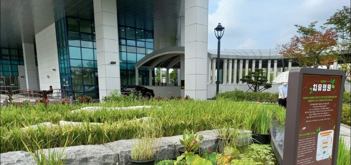 국립암센터와 함께 진행하고 있는 암환자 치유프로그램은 올해로 3년째 운영 중이다. 암환자들의 정서적 치유와 사회복귀를 지원하기 위해 암센터 내에 가와지1호를 활용한 생태논과 수생연못, 상자텃밭 등 치유정원을 조성, 원예활동을 진행해 참여자들의 호평을 얻고 있다.