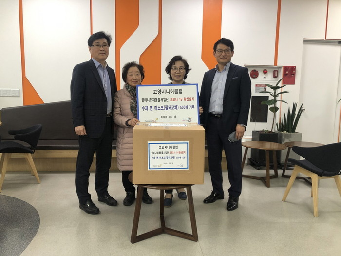 이 날 기부는 고양시니어클럽의 ‘할머니와 재봉틀’ 사업단 10명의 어르신들과 자원봉사자 어르신 1명이 함께 참여하여 지난 9일부터 17일까지 일주일간 열심히 만든 면마스크 전부를 고양시에 전달했다.