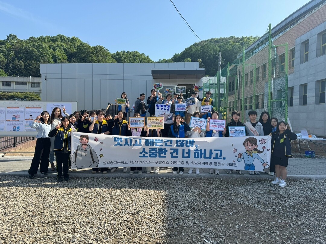 학교 등굣길 캠페인 참여자들은 피켓을 들고 “소중한 너를 응원해”, “폭력은 한순간! 상처는 영원히! 학교폭력 멈춰!” 등 응원의 메시지를 외치며 등교하는 학생들의 기운을 북돋았다.