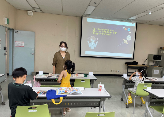 [사진설명] 고양 백석도서관 북스타트 매니저가 어린이 독서수업을 진행하고 있다.
