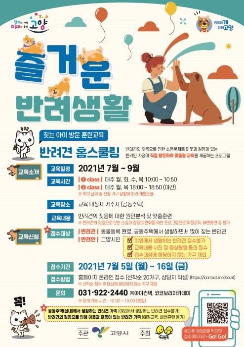 한편, 시는 상반기에 슬기로운 반려생활 (찾아가는 반려견 행동교정 교실), 건강한 반려생활(반려동물 건강관리 기초상식과 셀프 위생 미용법 교육) 등을 진행해 약 300여 명의 고양시민에게 호평을 받은 바 있다.