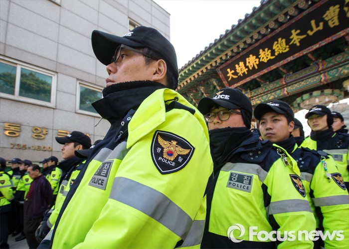 | △ 8일 오후 서울 종로구 조계사 앞이 경찰 병력들로 붐비고 있다. <사진제공=포커스뉴스> |
