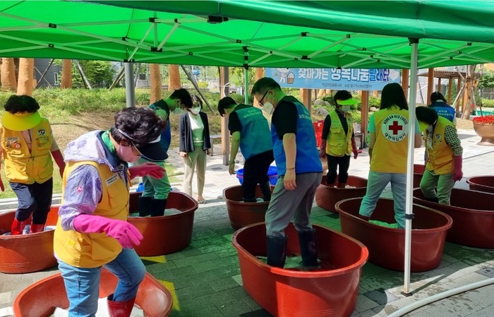 [부자동네타임즈 김인수기자] 고양시 삼송2동행정복지센터(동장 양재관)는 삼송2동 지역사회보장협의체와 적십자삼송봉사회가 지난 7일, 원흥마을 12단지에서 삼송2동 특화사업인 ‘삼송이(2)와 함께 찾아가는 행복나눔빨래터’를 운영해 주민들에게 빨래서비스를 제공했다고 밝혔다.
