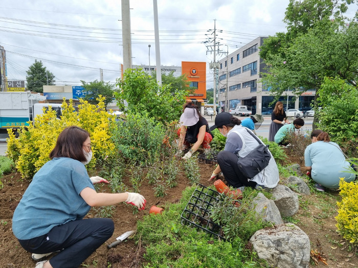 화단 가꾸기에 참여한 주민들은 잡초와 고사한 식물을 정리하고 금계국, 라벤더 등 4종의 초화를 심었다.